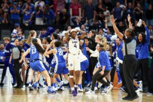 She was less than that against Duke, finishing with 13 points, five rebounds and four personal fouls. In the first half, she struggled mightily, going 1 for 7 with two rebounds in 14 minutes before righting her way in the final 20 minutes. LSU got down by 11 points with 7:35 to go, but went on a 10-0 run and grabbed an 85-84 lead with nine seconds to go.