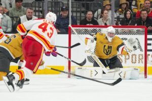 The Golden Knights fell behind three times before breaking the game open in the third period. Hart wasn’t tested much that period, saving all three shots on goal.