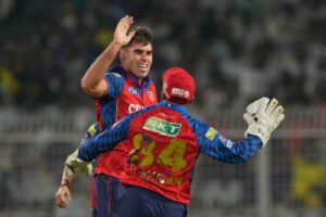 Kolkata reached 25-2 in 3.4 overs when the rain arrived at Eden Gardens. Punjab fast bowler Xavier Bartlett found the outside edges of Finn Allen and Cameron Green in the space of three balls in his first over.